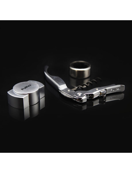 Set composed of a Pulltparrot corkscrew, a foil cutter and a drip collar. The Pulltparrot corkscrew model with a retractile double lever system, allows cork removal in 2 steps without bending or breaking, with ease and comfort. It is one of the references in the restaurant business, as the Pullparrot colour model (promotional) corkscrew is among the most used and valued by waiters around the world. The double lever system is internationally patented.
