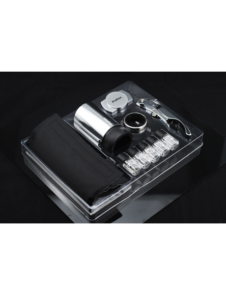 A heat preservation of wine set, maintain appropriate drinking temperature; A vacuum wine plug, prevent the oxidation of the wine in the bottle after; A foil cutting mechanism, which can be easily cut wine cap; A double lever wine aroma of the wine bottle opener and five common nose.